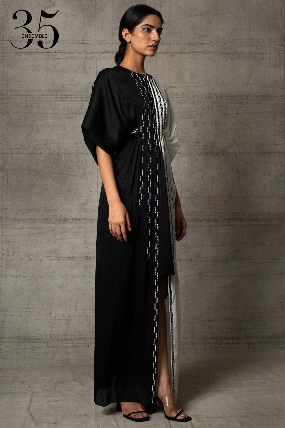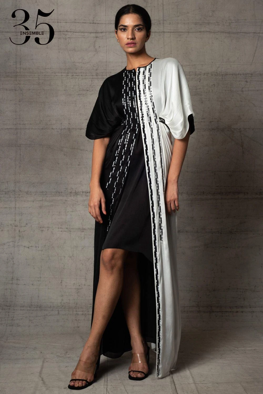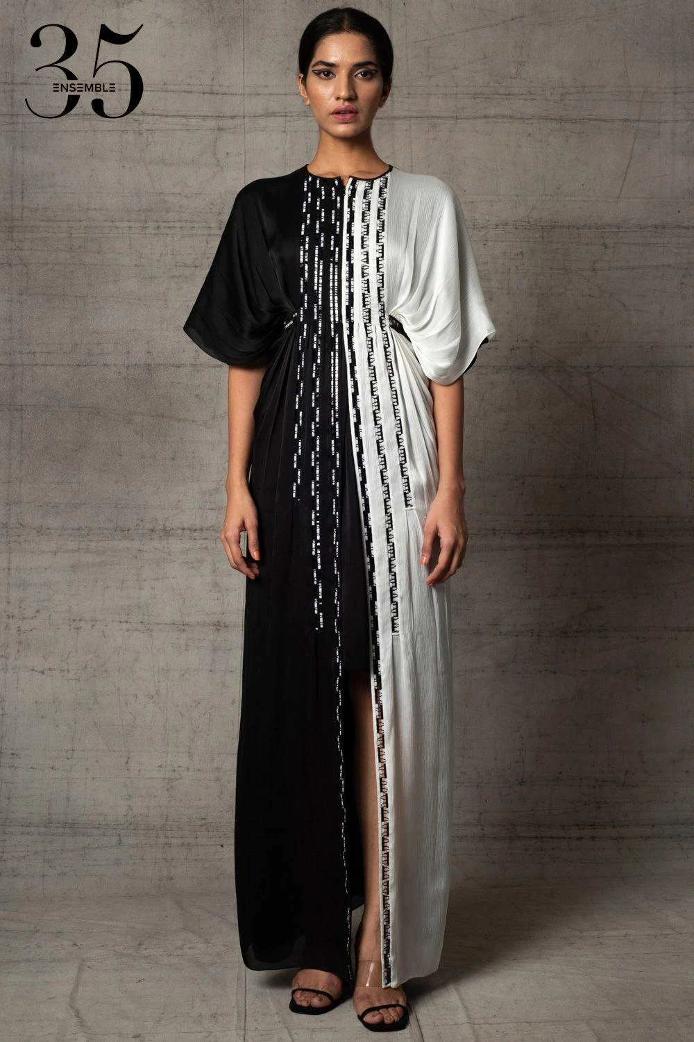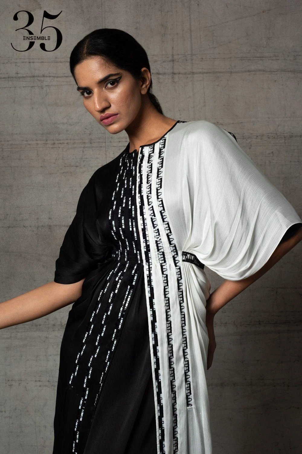 A yearlong celebration of its 35th anniversary telling the story of modern Indian fashion. Crafted in chiffon, this beautifully & meticulously designed paneled dress features a metallic yoke & an asymmetric hem.