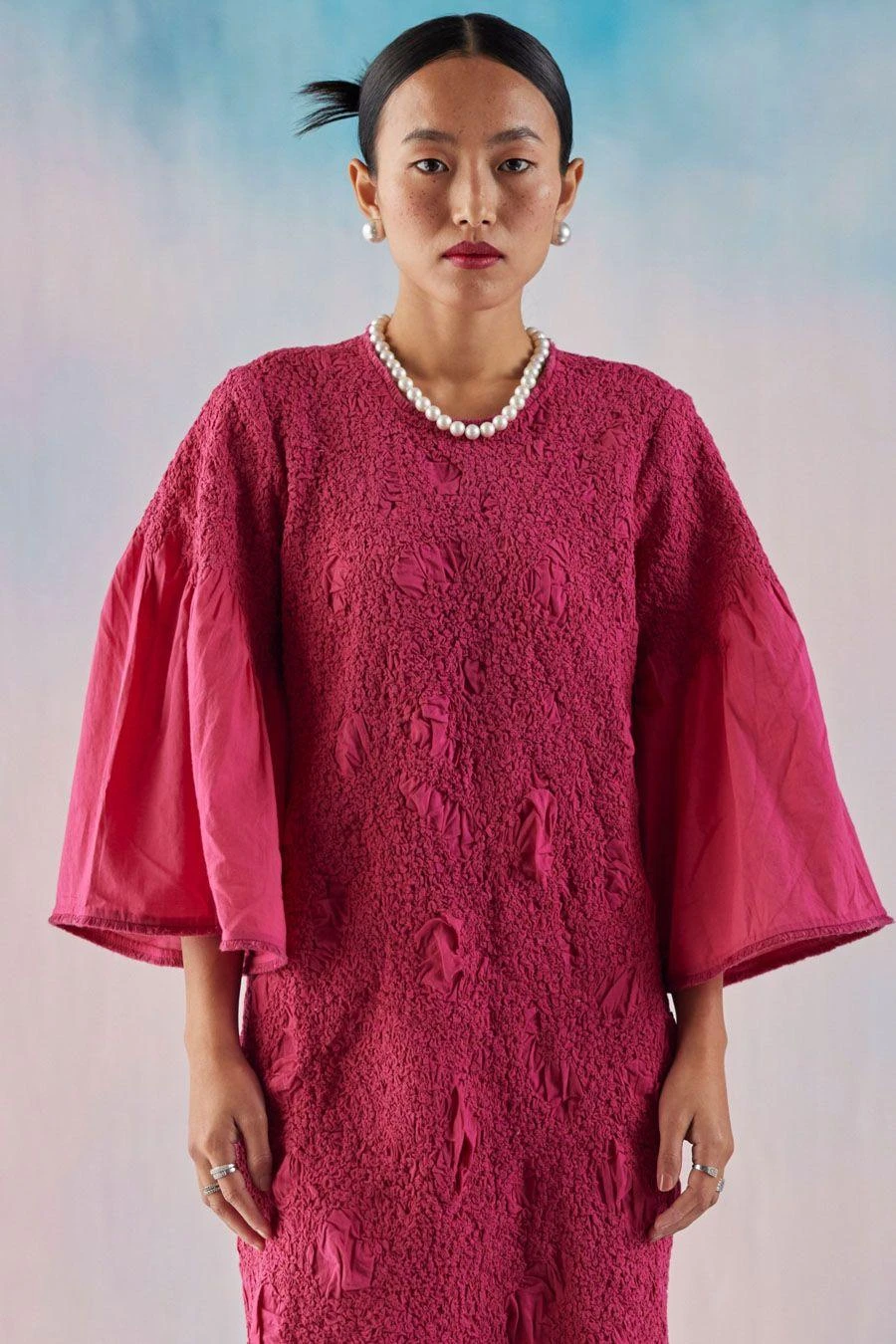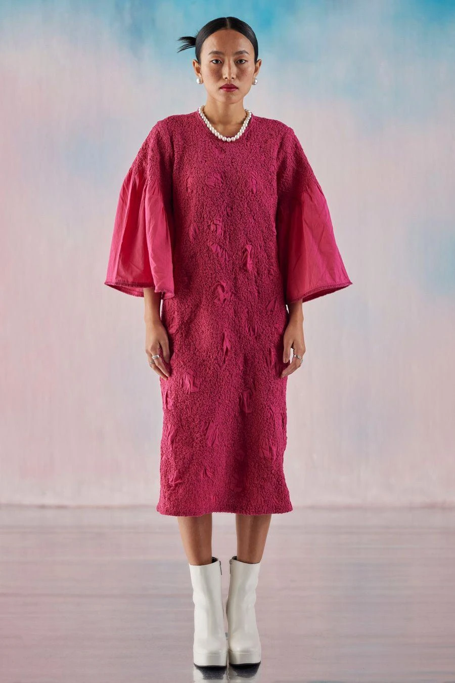 Crafted from 100% cotton, the Fuchsia Berry dress is adorned with the smocking technique, adding a textured touch. Wear it with your everyday slides for casual chic or opt for boots to make a statement.