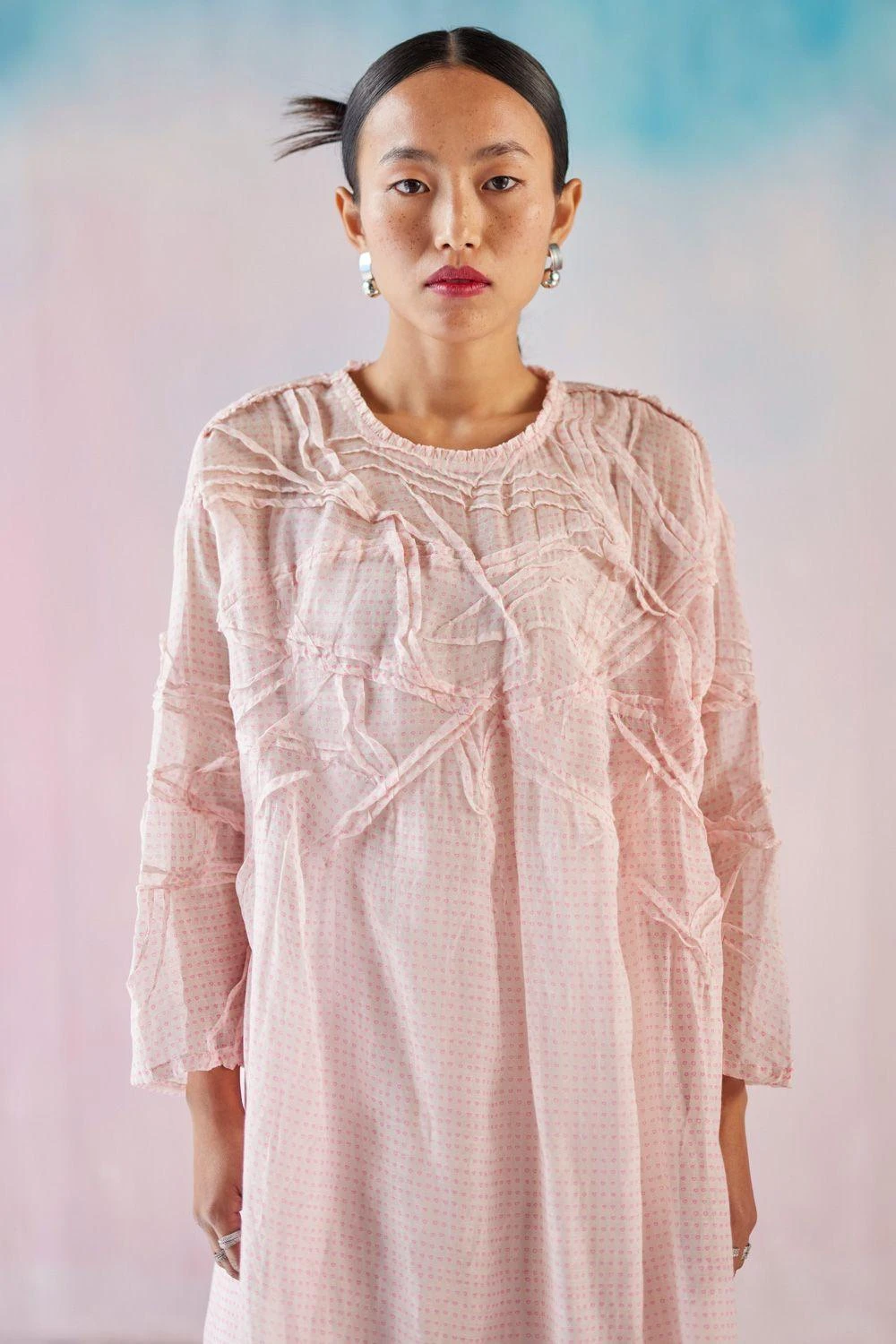 Fall in love with this Pleated Highlow Dress. The playful small heart prints create a whimsical charm, while the pleated texture adds a touch of sophistication. With its unique yoke and sleeves design, this dress is both stylish and flattering.