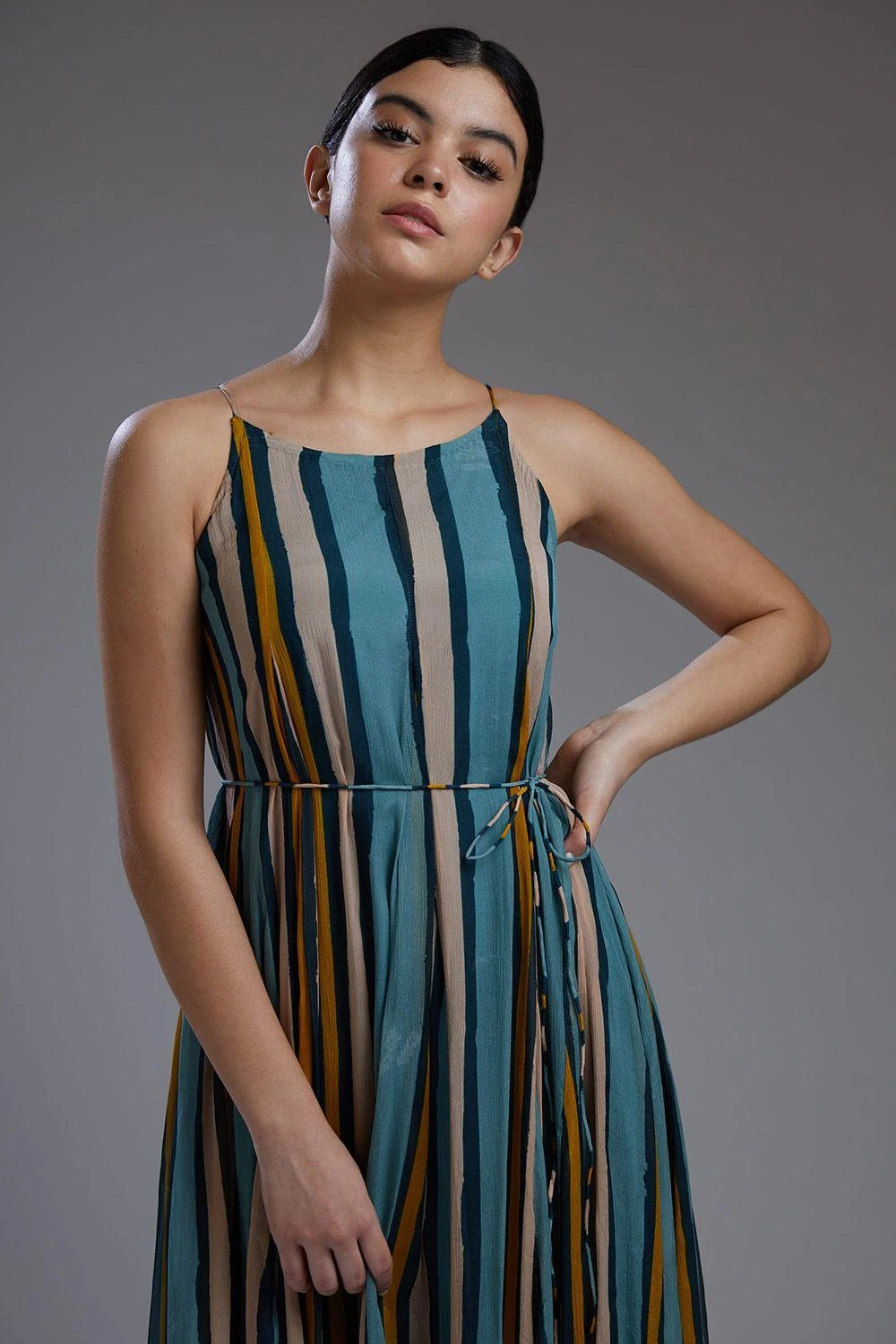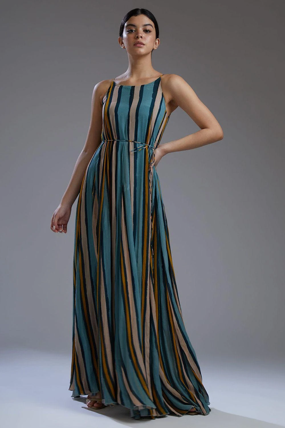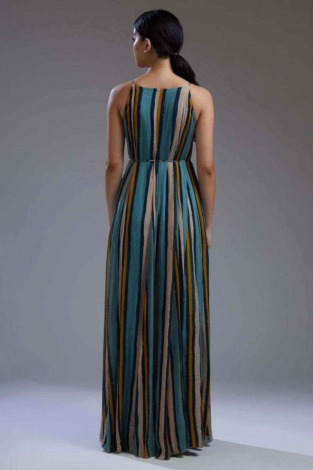 KoAi Chiffon Multicolor Stripe Long Flare Dress