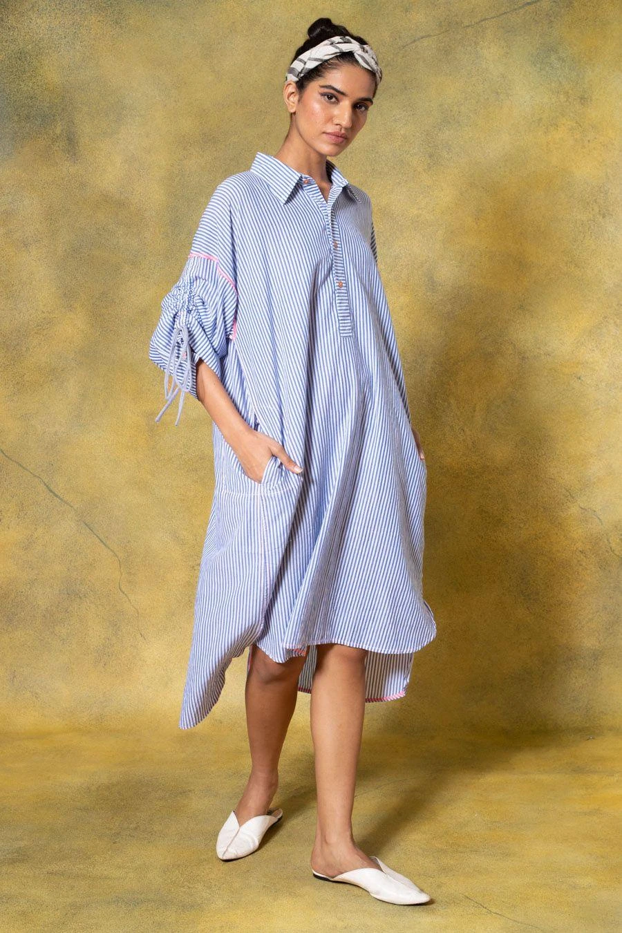SavioJon Blue Collared High-low Dress